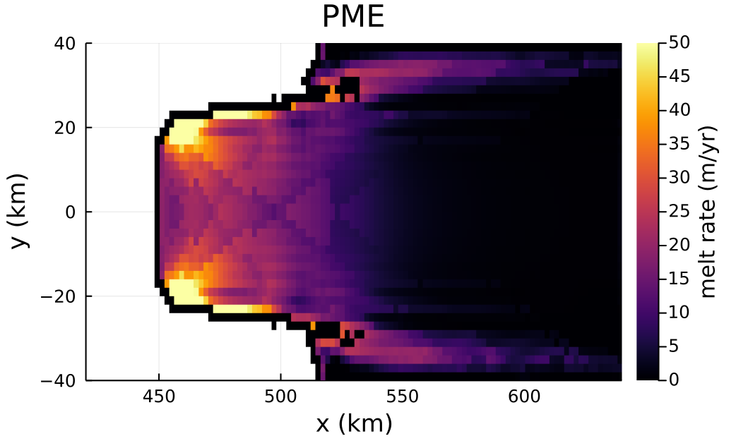 Hopefully this example demonstrates the procedure for adding melt rate models to WAVI.jl. If there are any questions, don't hesistate to get in touch (see the "Contact Us" tab)