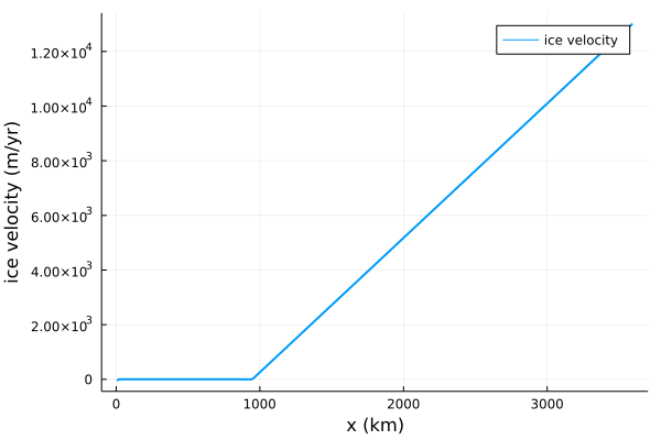 Now lets have a look at the velocity in the ice. We'll make a new plot for this: